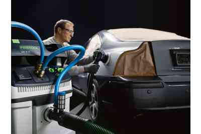 Csatlakoztatható adapter CT 26/36/48 típushoz kapcsolóautomatikával a sűrített levegős szerszámokhoz az elszívómobilon. Megfelelő kezelés esetén az elszívó automatikusan elindul a pneumatikus csiszoló indításakor: 1. Csatlakozás a sűrítettlevegő-ellátáshoz az elszívóval való összekapcsolási lehetőséggel. 2. Az elszívó és a csiszoló összekapcsolása.