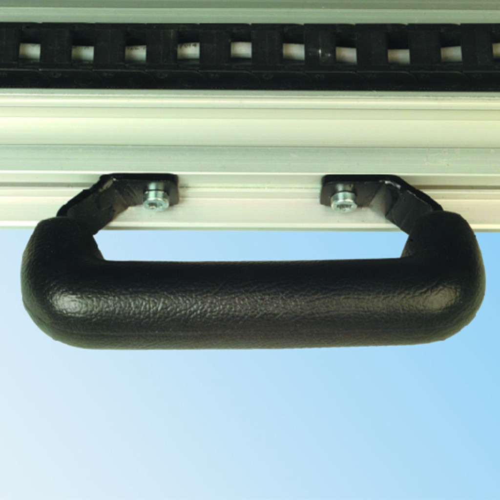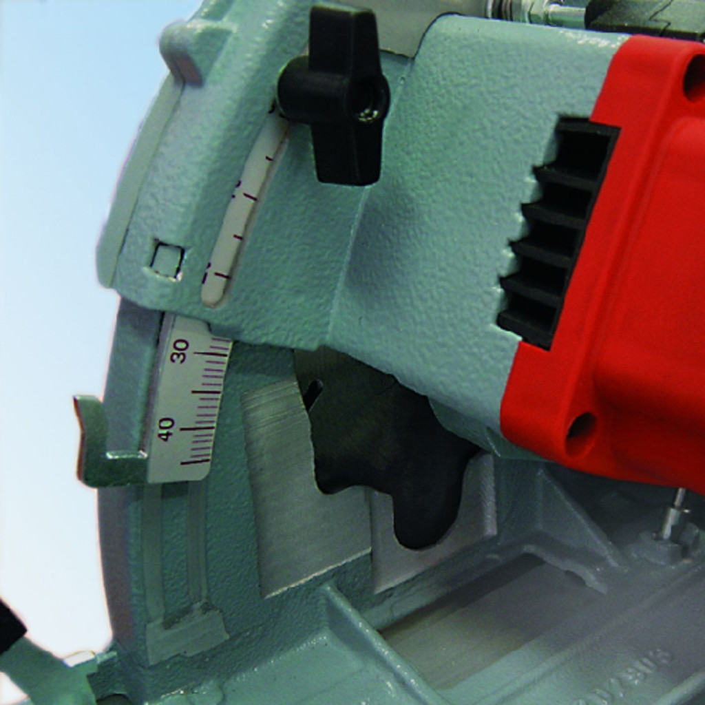 Könnyen hordozható a sínbe integrált állítható fogantyúval. Pontos skála a poontos beállításhoz