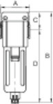 GA« szűrő, PC tartállyal, védőburkolattal és tartókonzollal, 5 µm, BG 300, G3/8, PE max 10 bar, üzemi nyomás 1,5 - 9 bar, lefolyó: HA